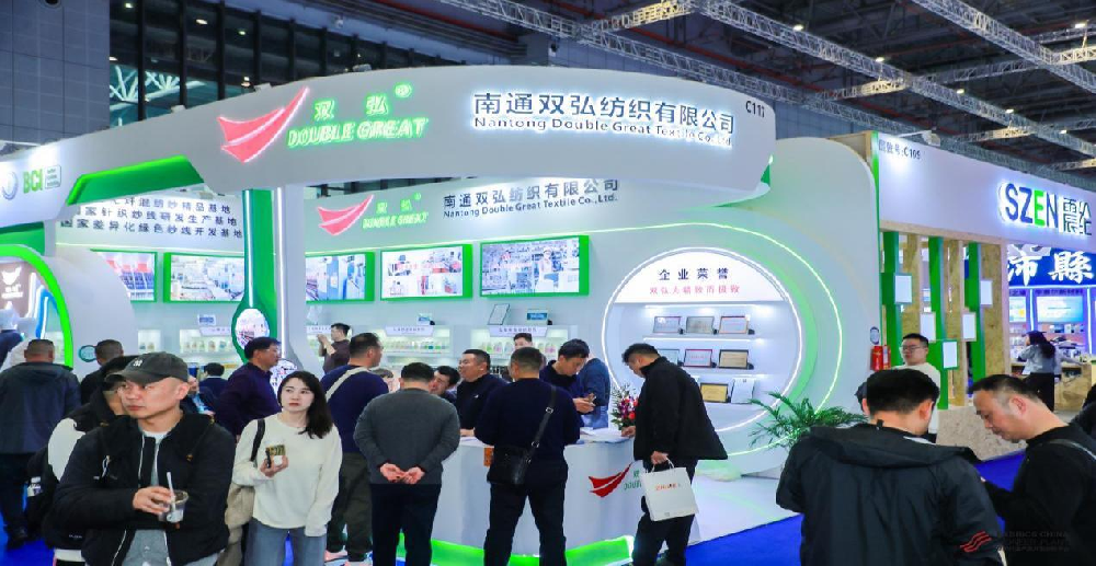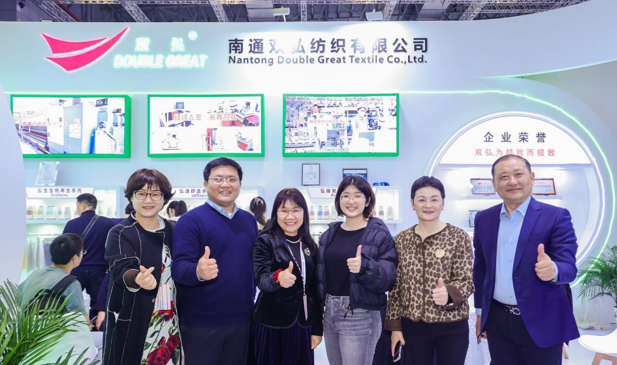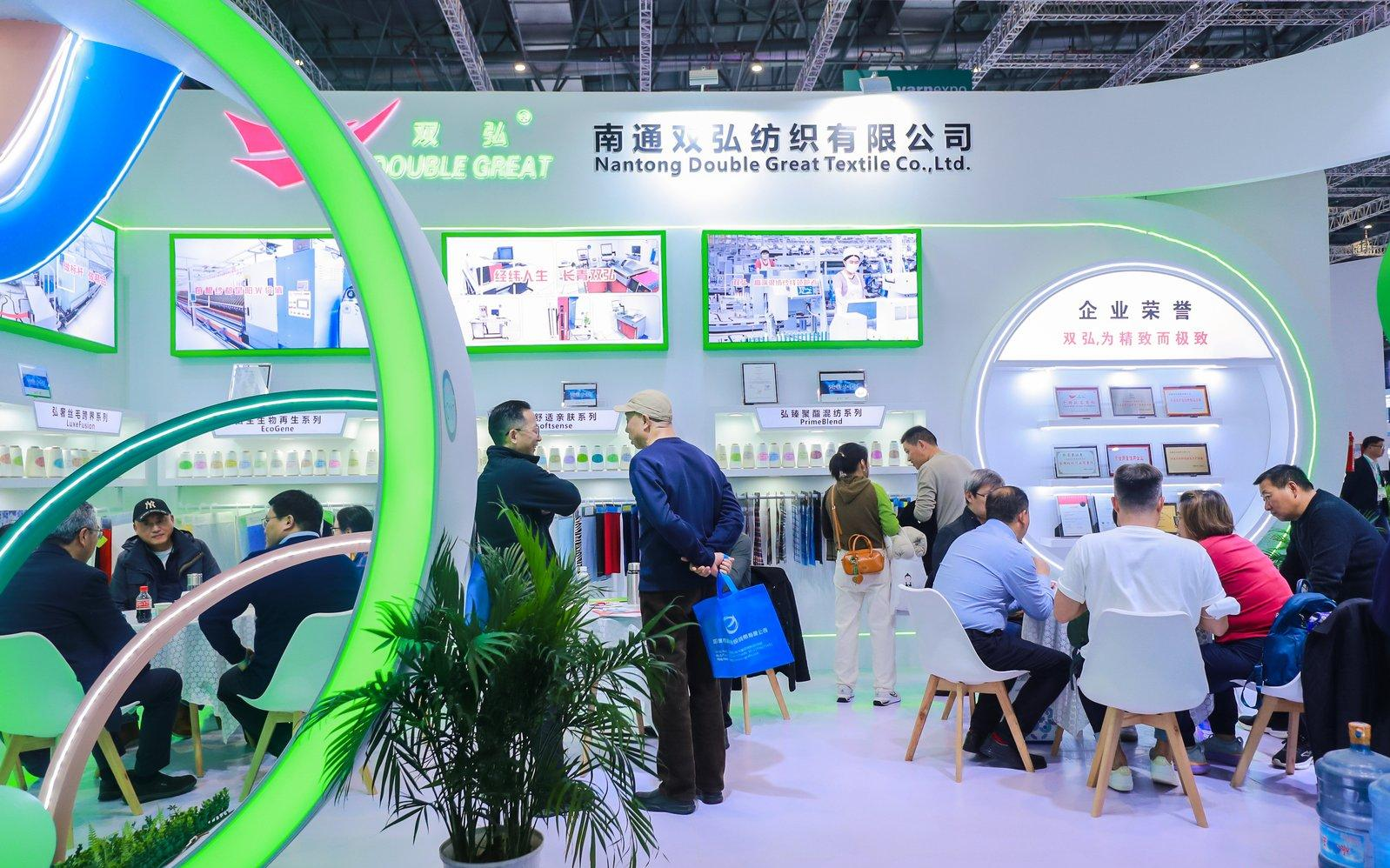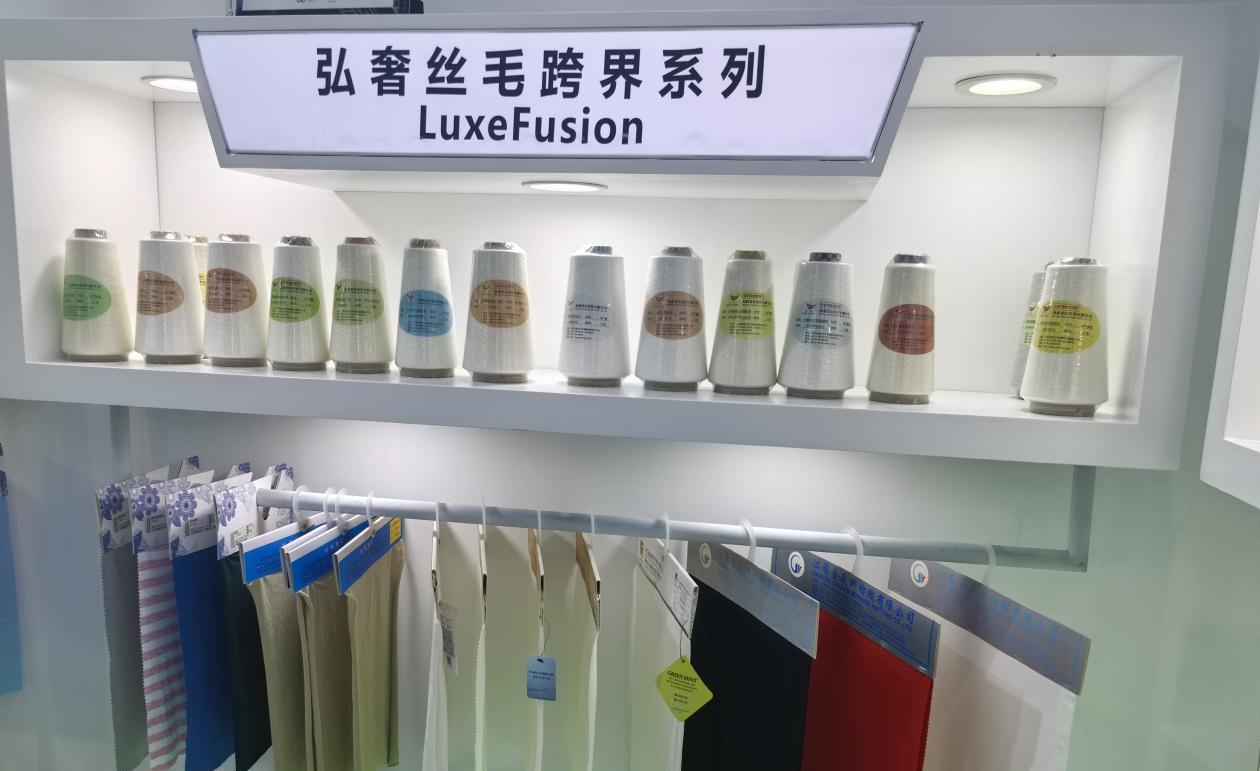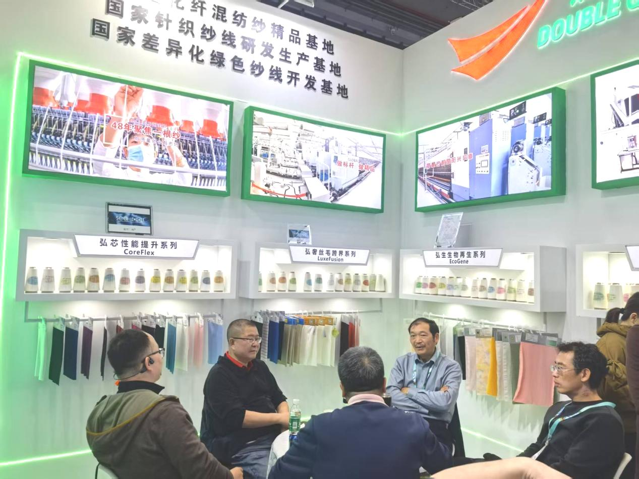 Nantong Double Great Textile Co., Ltd. ha portato una serie di mostre alla mostra, tra cui serie di fibre di cellulosa differenziate, serie a base biologica, serie di poliestere di fascia alta riciclata, serie di core-spoun differenziate, serie di hong di luce naturale di fascia alta e prodotti a base di bio a base di lana di lana di nuovo sviluppato, materiali a base di bio (PLA di acido polilattico) e altri prodotti di alto livello.