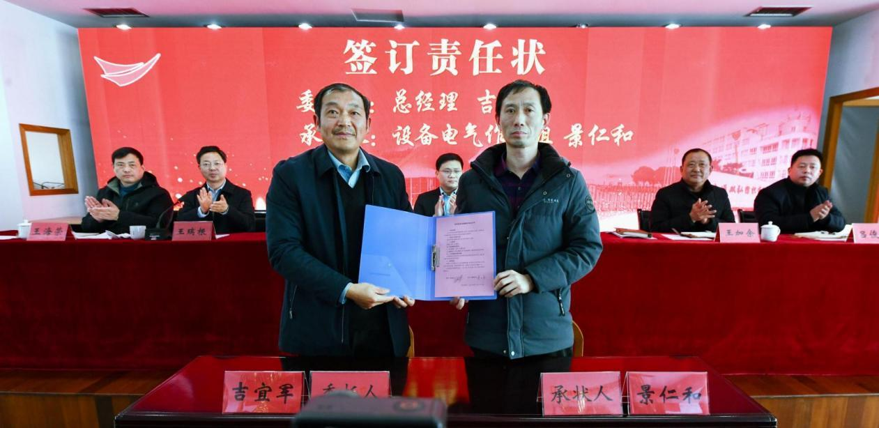 Con un obiettivo e una mente, ci sforziamo di implementare strategie di riforma. Sottolineiamo la leadership politica e costruiamo un team di dipendenti. Sottolineiamo il tema della responsabilità e stimoliamo la vitalità. Sottolineiamo una fabbrica con più sistemi e incoraggiamo le fusioni e le acquisizioni. Sottolineiamo l'efficienza del lavoro, la gestione centralizzata da parte dell'azienda e la responsabilità gerarchica da parte dei dipartimenti. L'unità è forza e la lotta crea il futuro. Il compagno Ji Yijun spera che tutte le persone doppie siano sicure, fiduciose, pionieristiche, G ed intraprendenti con lo spirito di un serpente che può percorrere migliaia di miglia, prendere l'iniziativa in difficoltà, scalare gli ostacoli nelle avversità e lavorare sodo per costruire un doppio grande grande e creare un futuro migliore. The head of the marketing department signed a marketing target responsibility letter with Chairman Yang Yang, and the head of the production workshop and the equipment electrical maintenance team signed the workshop target responsibility letter and the equipment electrical work responsibility letter with General Manager Ji Yiju,n respectively.