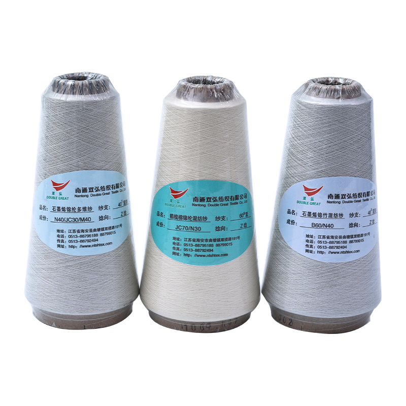Filato della serie di grafene: il grafene può fornire funzioni speciali del filato come proprietà antibatteriche e antatiche e può anche migliorare la resistenza del filo e altre proprietà.